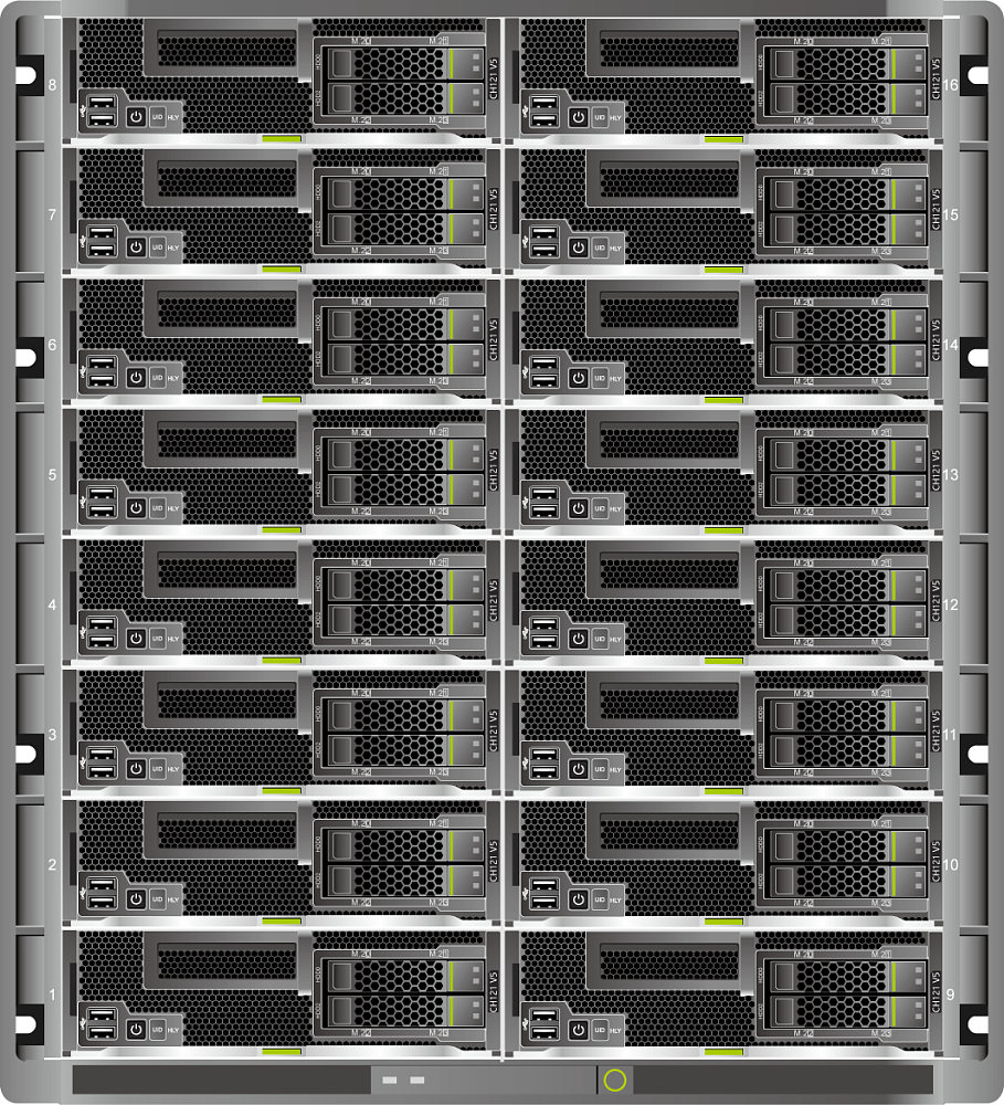 E9000 имеет модульную конструкцию, включающую вычислительные узлы, хранилище, коммутацию, систему охлаждения и электропитание. Это позволяет масштабировать сервер от компактных до полноразмерных стойк для гибкого расширения услуг. Он поддерживает различные конфигурации, подходящие для различных сценариев вычислительной нагрузки. Вычислительные узлы с двумя и четырьмя процессорами могут быть объединены с использованием QuickPath Interconnect (QPI).